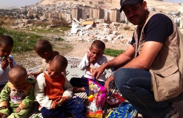 President of the International Relief organization m. Mamdooh Badawi, with Syrian children from the besieged Yarmouk camp, suffers from scabies, it was impossible to get them out of the besieged camp for treatment, and because the goal of the International Relief Organization is purely humanitarian, it exceeded all obstacles.